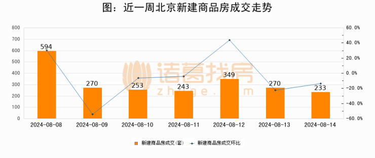 【北京成交日报】08月14日新房成交233套、二手房703套;涨价房源121套