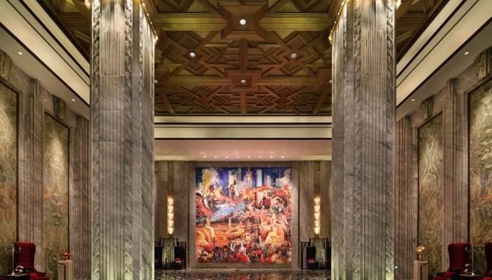 作为万达系酒店的标杆,据传,外滩万达瑞华斥资30亿打造,单装修就花费了超10亿元,比如酒店大堂巨型玉雕壁画是目前全球最大的玉石雕塑,以400吨上好玉石精心雕刻,总计68平米,耗资近亿元。
