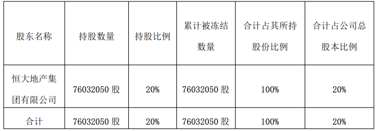 廊坊发展:恒大地产持有的公司20%股份全部被轮候冻结