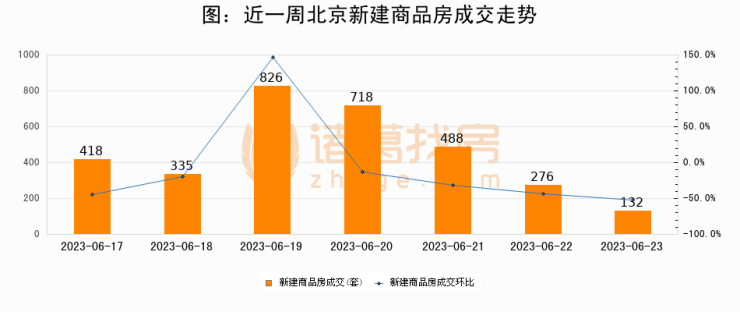 【北京成交日报】06月23日新房成交132套、二手房66套;涨价房源102套