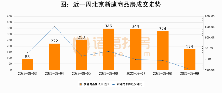 【北京成交日报】09月09日新房成交174套、二手房147套;涨价房源324套
