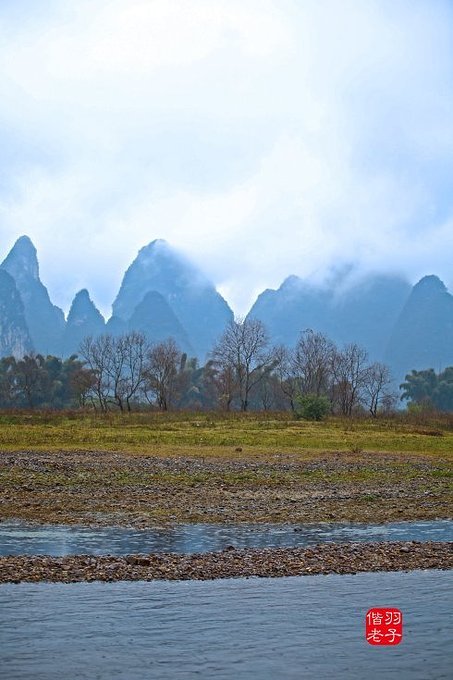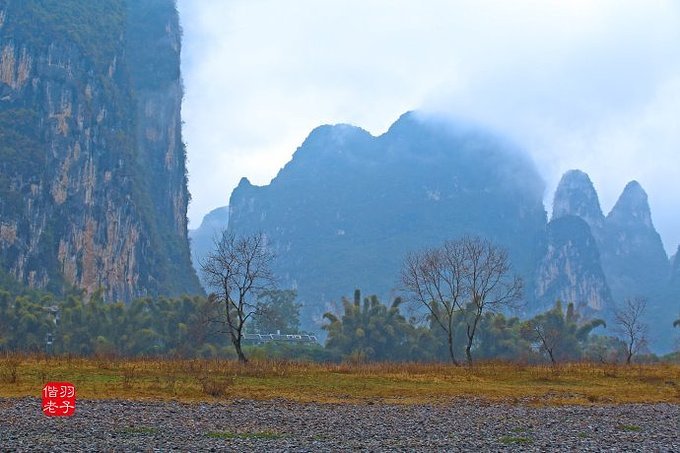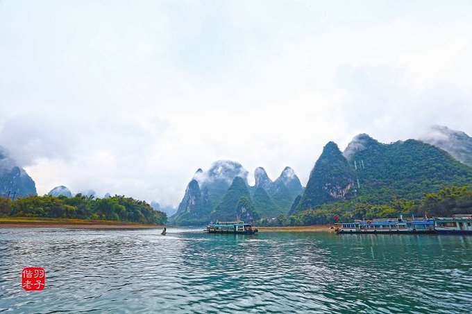 烟雨漓江赐给人们的都是另一种美的享受;细雨如纱,飘飘沥沥;云雾缭绕,似在仙宫,如入梦境。