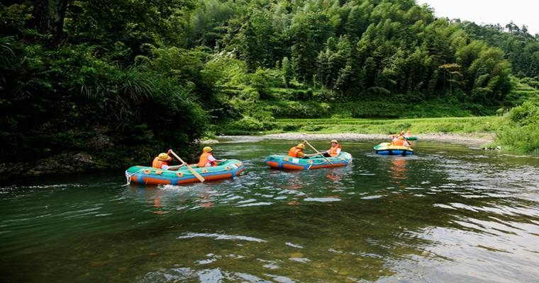 从兴坪回望中心,一个美丽的绿洲如翡翠镶嵌在画屏中央,鸬鹚渔火、水牛牧歌,给人一种回归大自然的野趣。