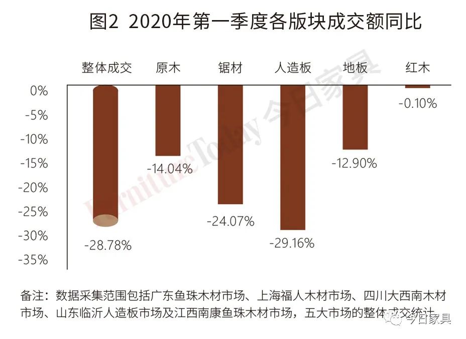 2020年新冠肺炎疫情影响下,国内楼市成交低迷,家具家居消费下滑,与之密切相关的木材市场出现无法预期需求萎缩,从而使得整个链条上出现了存货堆积,进而带来木材价格的低位运行甚至下滑。
