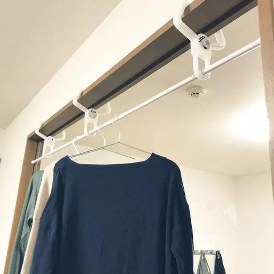 门框也能挂(晾)衣服,利用这样的挂钩开辟可移动晾衣区。