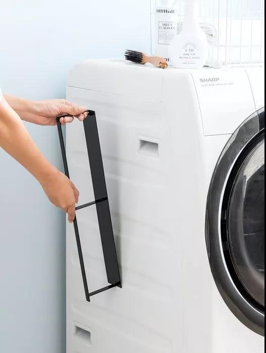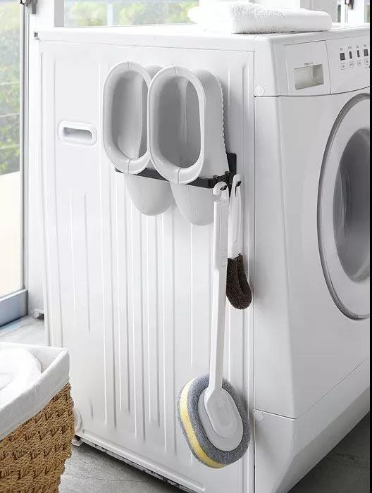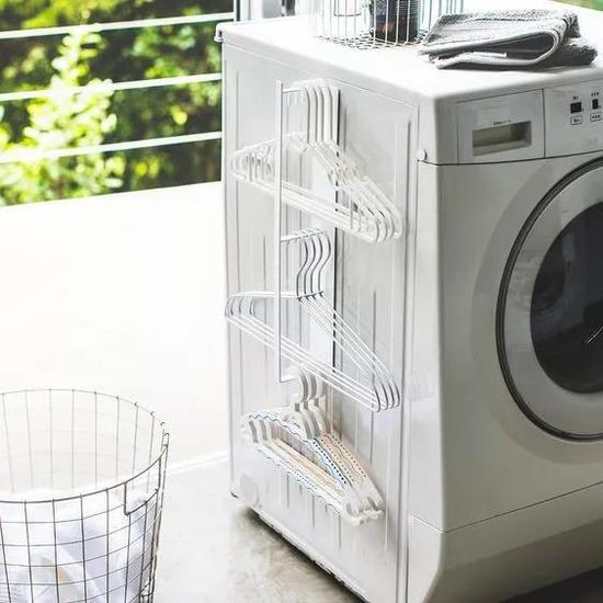 洗衣机周边收纳,还得打孔吗?傻。用这样带磁性的收纳架,吸力强劲!让它和洗衣机紧紧地吸在一起,然后开始收纳。