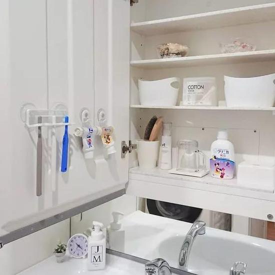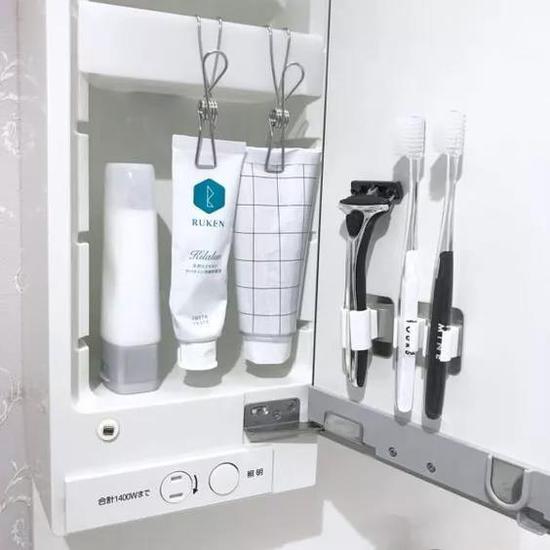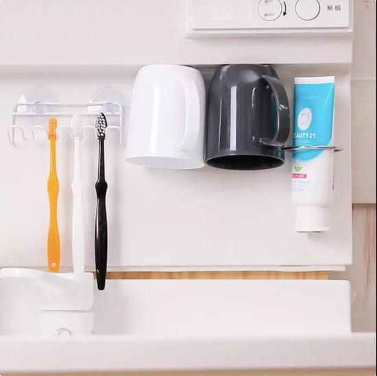 很多人家都开始以这样“勒住牙刷的喉咙”方式来收纳牙刷,还避免滋生细菌。更高阶一些的,会用免打孔消毒牙刷架,更卫生些。