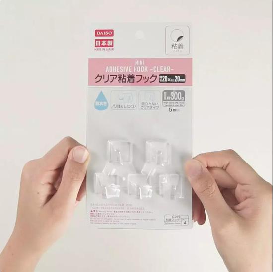 还有这样不起眼的小粘钩,可以用来把弱小的垃圾桶悬挂起来,方便打扫或者避免不小心踢翻。
