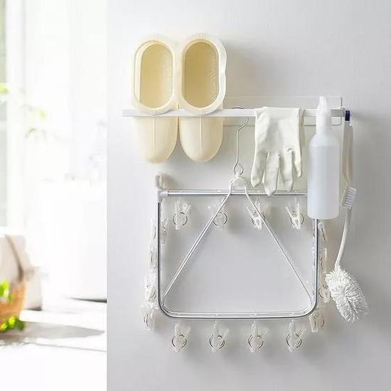 晾衣架、清洁剂、刷子,都可以收纳起来。并不占有空间,操作也简单顺手,适合小仙女们。(啥?小仙女都不做家务...)