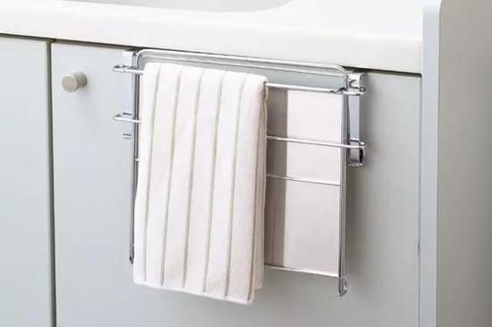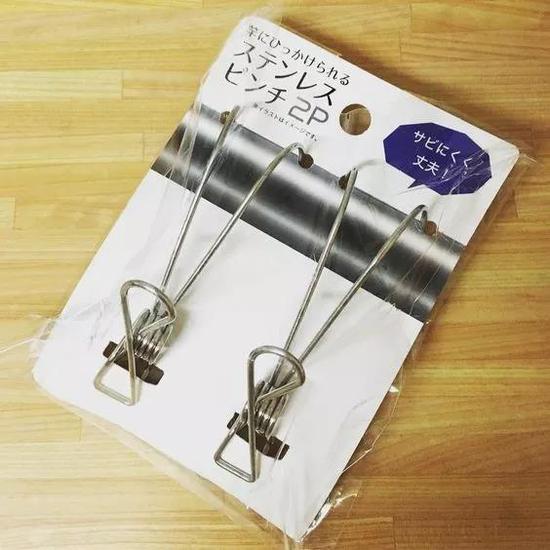 正确对待夹子,就是这样的形式。这种夹子超好用,比挂钩更灵活,但是只能挂轻一些的物品。(旁边柜门上的挂钩在暗中窃听)