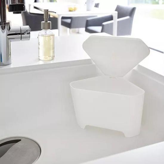 这是一个垃圾桶,放在水池边儿的可沥水垃圾桶。为的就是做饭的时候,可以顺手扔掉菜叶子,也可以当个小收纳盒。(放厨房洗菜池或者卫生间洗漱池都可适用)