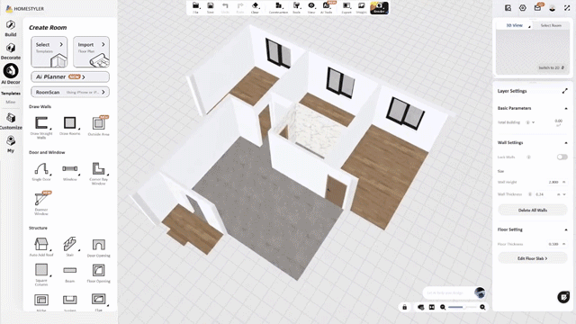 "一句话出设计" 不再是梦想——用户只需输入文字描述,AI设计助手便可瞬间生成多套3D设计方案,实时修改硬装材质、家具布局,让创意构想快速落地。更令人惊叹的是“上传户型秒变3D”的黑科技:无论是拍张纸质户型图上传,还是从千万级精准户型库中快速定位,AI都能在1分钟内自动识别并生成电子户型图,连墙厚、门窗位置都标注得清清楚楚,轻松搭建出可自由编辑的3D模型。