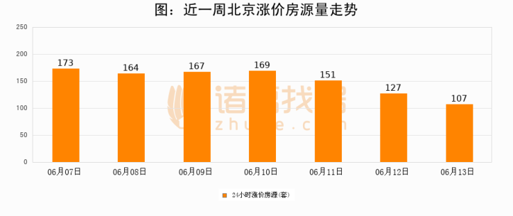 根据诸葛找房数据显示,北京24小时涨价房源量为107套,较06月12日减少20套,环比下降15.7%。与此同时,涨价房源占比小幅回落,对于购房者来说是一个入市窗口期,购房者可抓住时机入市。