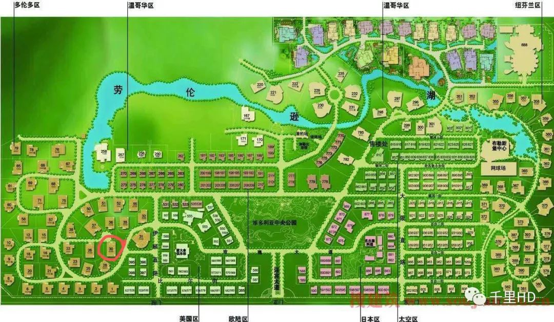 本房为《北京·玫瑰园》多伦多区环岛中心位置,独栋别墅,是开发商一手样板房(一手样板间都会选择一个社区里较高或者较好的位置,在视野、间距各方面,能够将房子的好发挥到优质的位置,再加以设计装修,给客户较好的体验)如图中红色圈出位置,楼间距前后左右无遮挡,楼间距大于周围其他独栋!