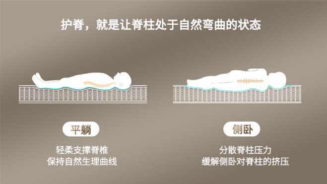 贴合度方面,Mini独立弹簧的表现同样优异,上千个mini弹簧,能够更灵敏感知下压、回弹力,并紧密贴合脊柱,舒缓脊柱肌群的压力,达到护脊的目的。
