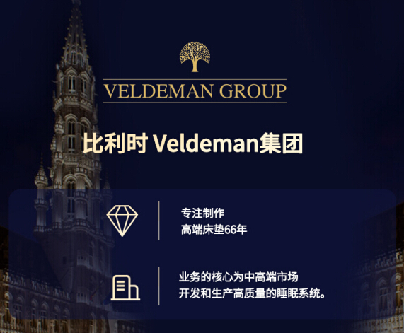 1954年至今,Veldeman集团的业务核心为中高端市场开发和生产高质量的睡眠系统,产品经过ECO、FSC等环保机构认证、旗下轻奢品牌VVIF维氏家族,始终坚持高品质化原则,致力于将更加优质的睡眠体验带给消费者。