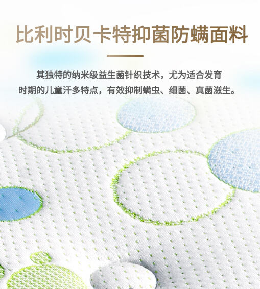 在面料方面,VVIF维氏家族采用比利时贝卡特抑菌防螨面料,此面料是高端床垫选用的面料,获得Oeko-Tex安全认证,可直接与肌肤接触。其具有的生物活性,能够有快速分解人体皮屑,让螨虫、细菌、真菌无法滋生,尤为适合发育中新陈代谢较快的儿童。