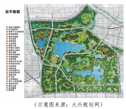 目前开放的南海子一期工程仅占公园总面积五分之一,二期目前正在紧锣密鼓的施工建设中,通过棚户区改造和拆除违法建设,腾退低端产业,未来将形成包括五个景区、十六个景点的生态景观区。
