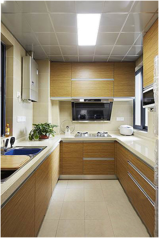 ▲所有吊顶模块几乎处于同一平面,看上去更有档次,业主可根据墙砖、橱柜的颜色、装修风格搭配吊顶样式,根据自己喜好选择不同样式的顶面。