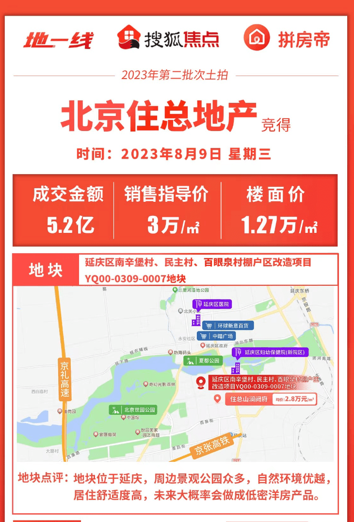 最后咱们再来看看土拍,上周又拍出两块地,延庆地块没啥悬念只有一家房企报名,最终被住总底价竞得指导价3万,这地方距离城区较远能不能买真要看需求,想通勤城区的我建议还是要谨慎毕竟确实是太远了,大概率还是以延庆本地客户为主。