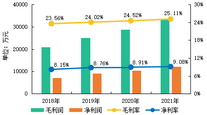 2021年,百强企业毛利润均值及净利润均值分别为3.37亿元及1.22亿元,较2020年分别增长16.97%及16.37%。与此同时,百强企业盈利能力持续稳健提升,毛利率均值和净利率均值分别为25.11%及9.08%,较2020年均有小幅度提升。报告称,多种经营成为毛利润增长的排名前列驱动力,是百强企业提升利润的主要抓手。