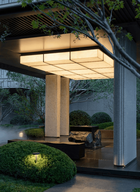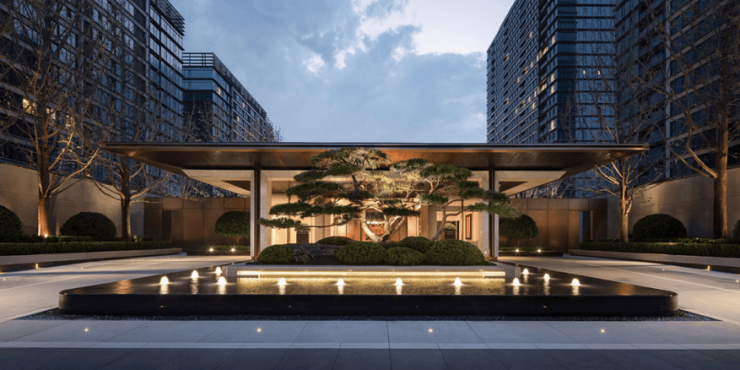同样初次呈现的,还有在近百米的南北楼间内打造的景观园林核心区。据现场人员介绍,融创壹号院的园林以“新都市自然主义”为理念,国际、都会与自然的格调贯穿始终,强化空间对称的序列感与几何美学的艺术性。自住区大堂进入,即见大片镜面水景、廊亭和草坪构成的景观核心轴。两侧错落的廊道之间,由多层次植被组合与微地形营造,可赏、可游、可栖,也带来了尊贵、隐逸的独特感官体验。