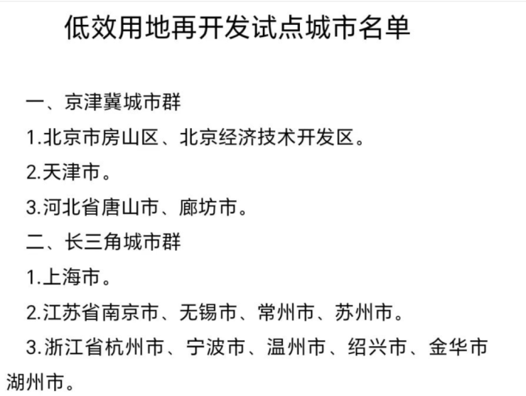去年9月自然资源部发布《自然资源部关于开展低效用地再开发试点工作的通知》,名单中就有北京,但是并不是全域,只有房山和经开区。