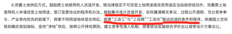 文件明确,低效用地再开发不能用于商品房,但是要“探索工改工”于“工改商”“工改住”联动改造的条件和程序。”