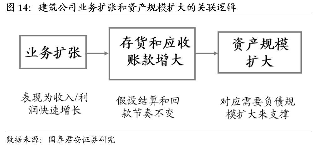 国君建筑韩其成团队认为:建筑公司的商业模式决定了资产负债表与其他行业存在较大差异,通过存货、应收账款、商誉等核心科目可研判公司资产质量,其变动规律多与宏观货币信用周期相关。