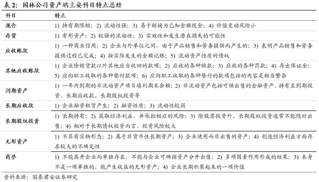 建筑类公司商业模式大多相似或接近,以工程施工业务为主,主要的甲方客户是政府或者地产商。为了更具体的解读分析建筑公司的资产负债表结构和特点,我们以园林板块为案例。园林是建筑工程行业的子行业之一,上游客户主要是政府(市政绿化、生态治理等)以及房地产开发商(地产园林)。园林工程施工业务的商业模式决定了垫资(项目施工成本)在先、结算回收现金在后,在项目结算回收现金之前会形成大量的存货以及应收账款(存货和应收账款的结算以及回收现金容易收到客户自身现金状况的影响),而且会随着园林公司业务规模扩张而同步扩大。