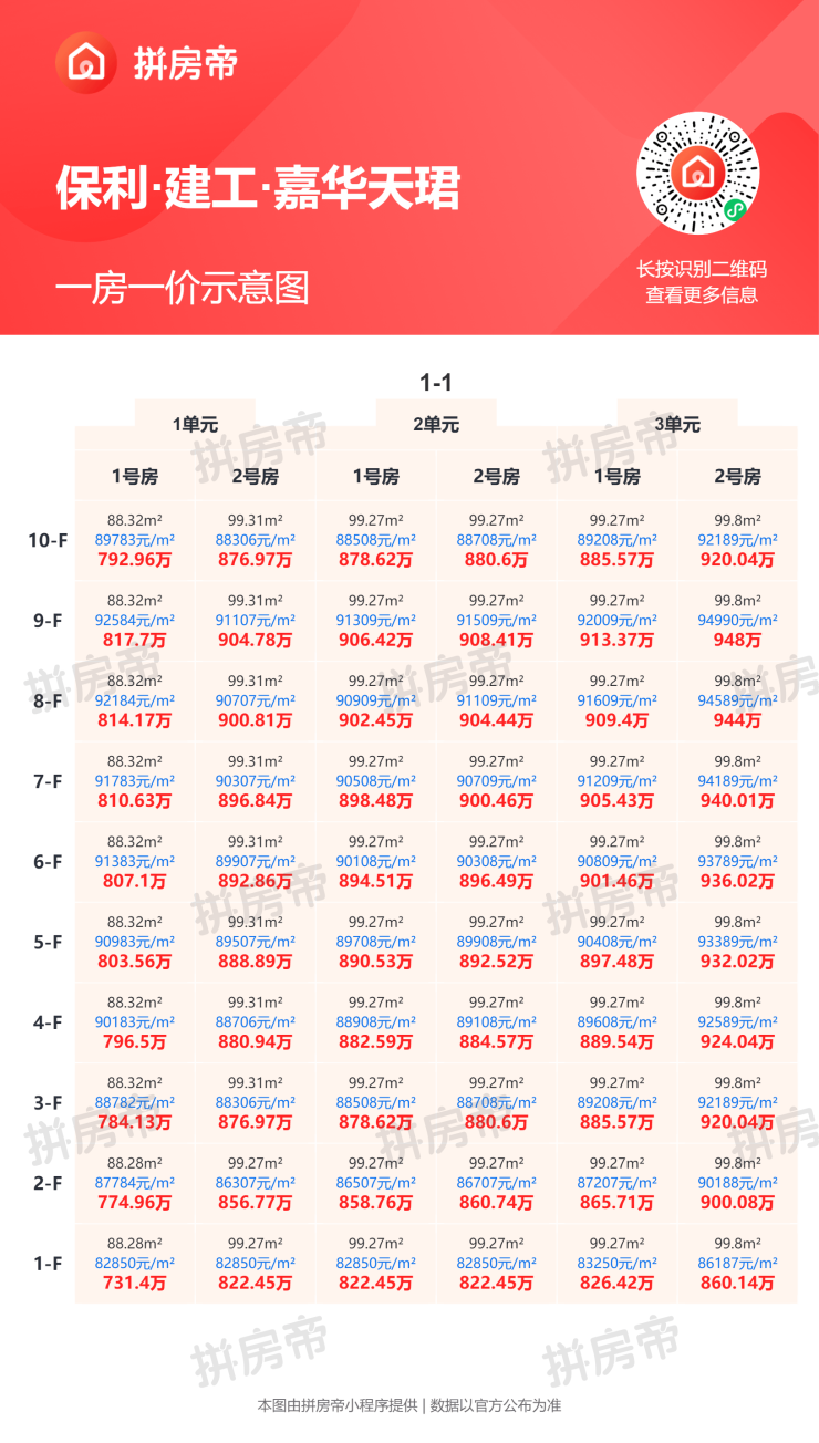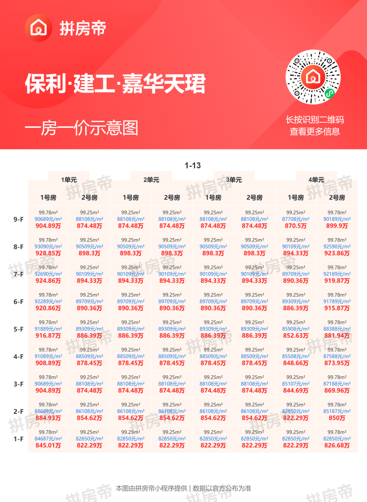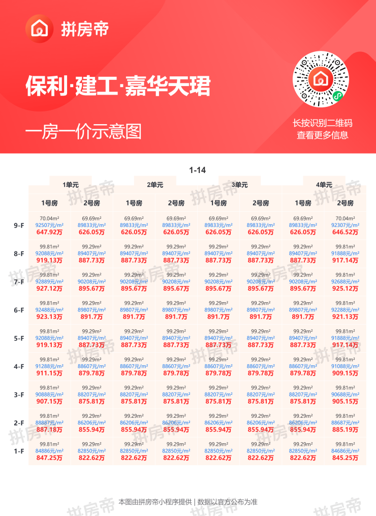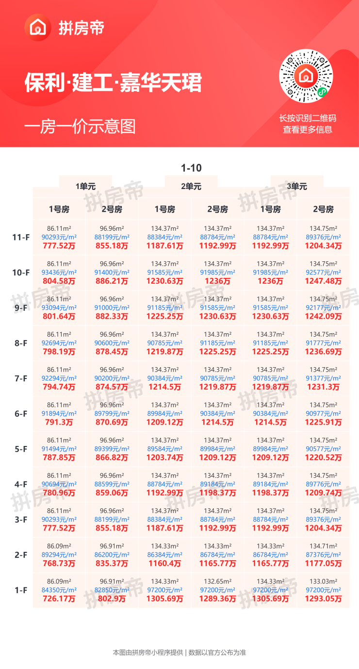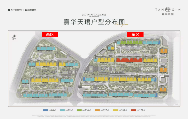 嘉华天珺分为东西两个地块,总户数1276户,本次取证的852套房源全部位于东区。西地块容积率1.7,东地块2.0。得益于较低的容积率,除了东区最东侧的3栋是14/15层小高层,其他楼栋都是11层以下的洋房。