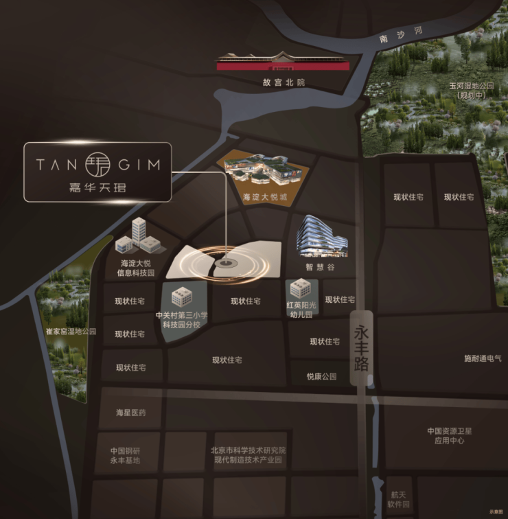 公园:项目东北侧约1公里规划了的西玉河湿地公园,预计今年5月完工。北侧1公里还有故宫北院,预计今年10月份竣工。