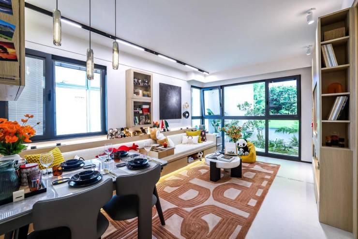 中建T5未来住区把关于未来美好生活的想象精心糅融于样板空间,有限的空间营造感官的高定体验,通过智能家居系统+科技化收纳体系+内部精致考究的装饰+空间的极致考量,在保障居者住得健康、住得安全的同时,打造拥有品质、美感及科技感的未来舒适人居空间。
