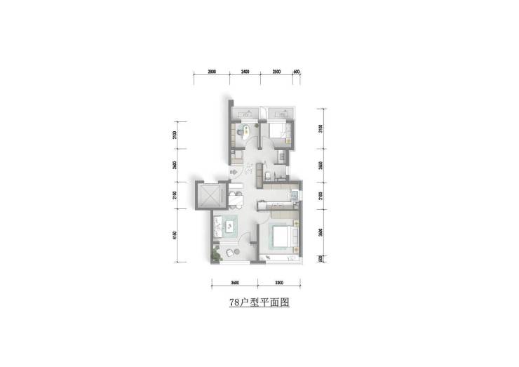 78㎡三室两厅一卫(132 套):南北通透,设独立玄关与家政间,主卧飘窗赠送,紧凑面积实现功能完备,总价门槛低。