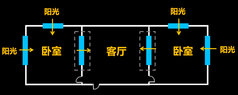 我们家90平米,两室两厅一厨一卫,但是户型不太好,扁担造型的房子,两头卧室中间客厅。作为楼层的中间户,客厅没有阳光,尖叫专家团的设计师们,有没有什么的建议,可以改善我们家客厅采光的不足的问题呢?