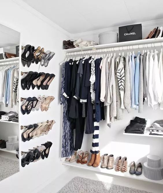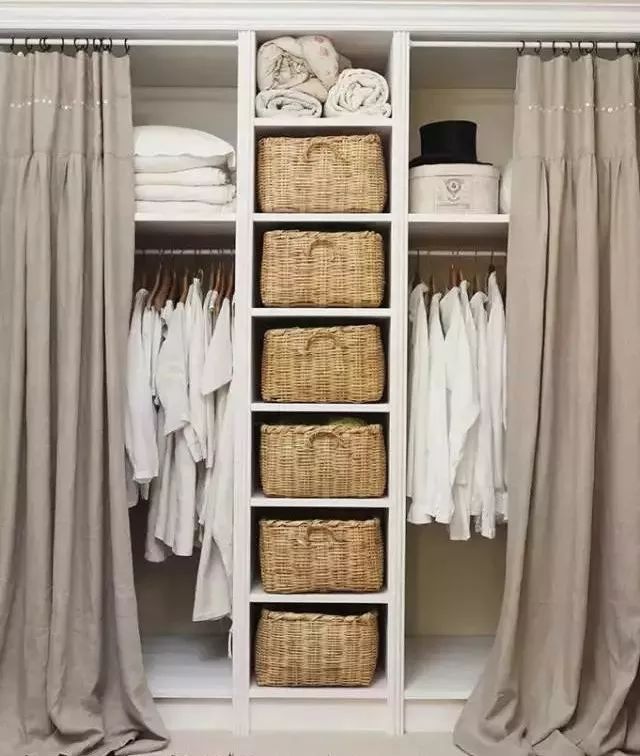 如果你的房间只有简易的单门衣柜,建议你去宜家购置一个的双门甚至四门衣柜,或者尽量把橱加高来扩大储衣空间;如果你觉得封闭式橱柜太过拥挤,可以试试开放型的衣架,或者干脆利用墙面和挂钩把衣物收纳起来。