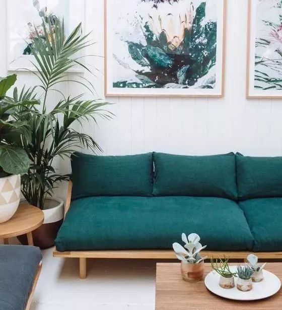将白色和原木色作为主基调,在家具布艺等软装元素方面,建议用一些饱和度低,明度高的中性色,调来作为中间色调过度。较后,在抱枕、饰品、装饰的选择上,需统一一个母色系,挑选纯度较高的色彩作为点点缀,墨绿色、橙色都是不错的选择,可以让整个空间活跃起来!