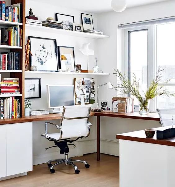 TIP 2 带有转角功能的三脚置物架和转角书桌+书柜的组合,也是很不错的选择。
