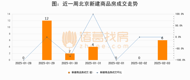 根据北京市住房和城乡建设委员会数据显示,2025年02月03日北京新建商品房成交6套,较昨日增加6套,环比上涨0%