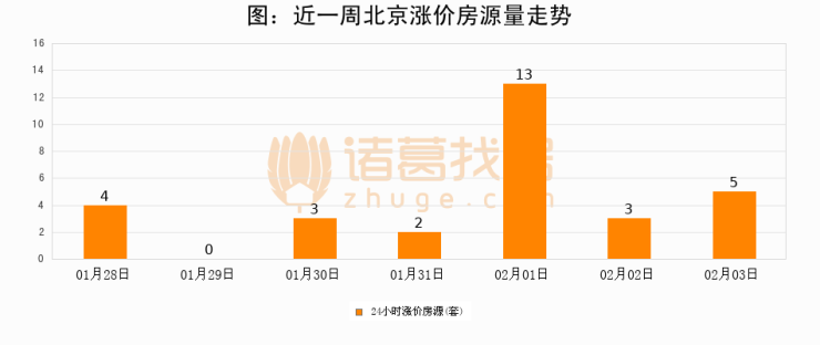 根据诸葛找房数据显示,北京24小时涨价房源量为5套,较02月02日增加2套,环比上涨66.7%。与此同时,涨价房源占比小幅扩大,业主信心有所提升。