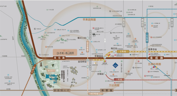 最后简单说下衙门口,位于五环内,是石景山环线位置最好的新房板块,但这个位置属于丰台和石景山交界的地方,目前没有地铁。