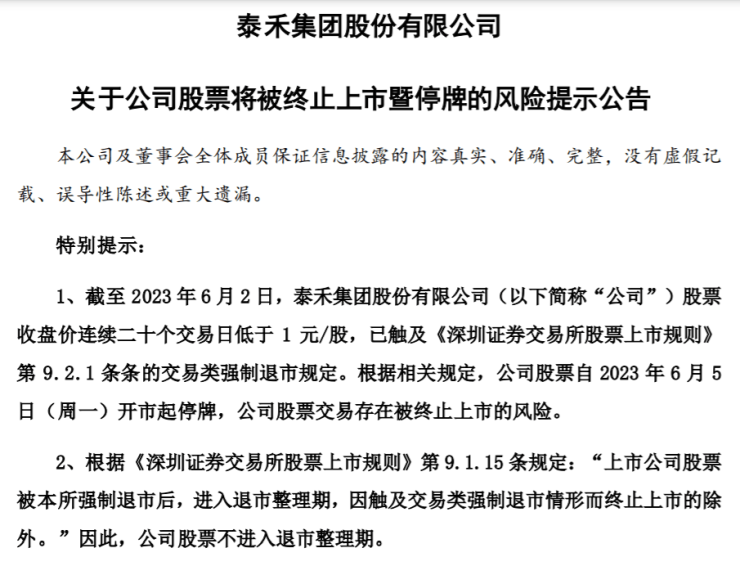 A股退市房企再添一家!ST泰禾将被终止上市,6月5日起停牌
