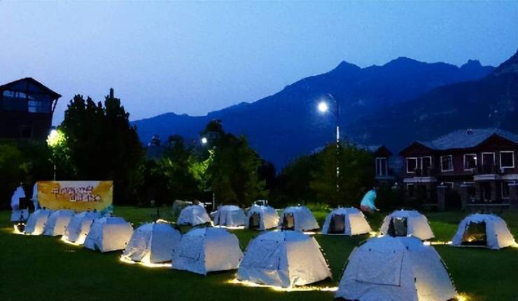 在星空下搭起帐篷、点起营灯,