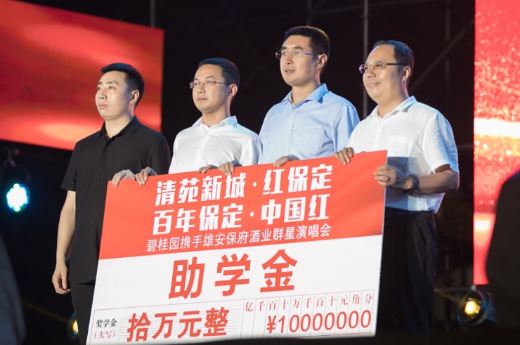 演唱会当晚,碧桂园清苑新城携手雄安保府酒业,借群星演唱会之机,为回馈家乡,助力莘莘学子求学路,特向保定学院捐资10万元用于校园建设,彰显担当,讴歌大爱。