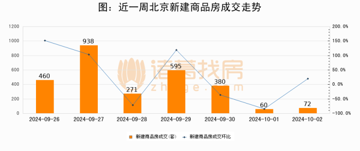 【北京成交日报】10月02日新房成交72套、二手房7套;涨价房源1481套