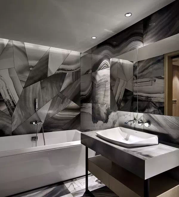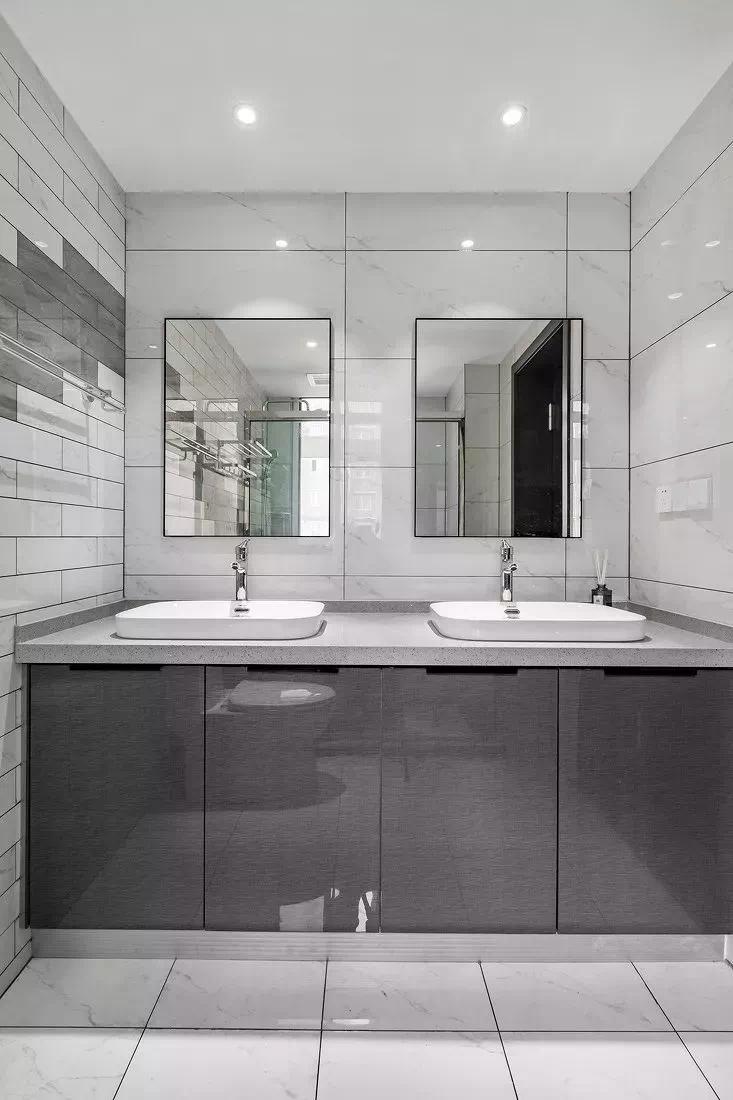 之前有分享过洗手台做台上盆和台下盆的设计,但洗手台其实还可以选择做台中盆的设计,顾名思义的就是台盆嵌入一半到台面中。台中盆的设计有着台上盆一样的造型感,又比台上盆好清洁一些,话不多说,一起来看图吧!