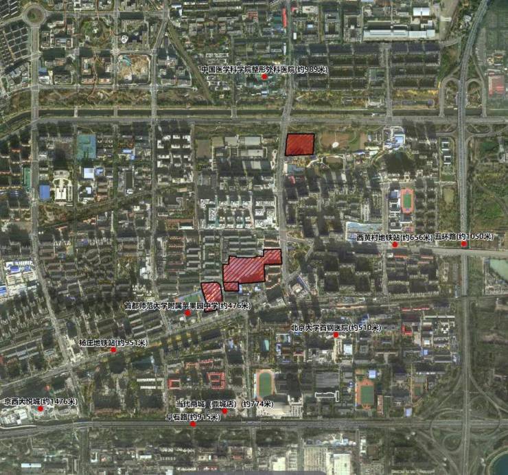 石景山西黄村地块位于苹果园街道,五环至六环之间,距海淀仅3公里,坐拥双地铁优势(6号线杨庄站780米、西黄村站600米)。