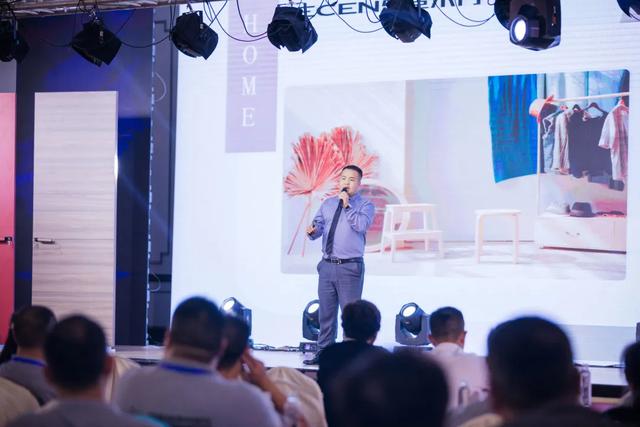 随后,乐臣的销售总监冯方选全面诠释了「终端为王」、「落地为王」的终端运营模式,为现场来宾带来了一场品阅乐臣木门如何打造「人、货、场」的终端盈利演讲。冯总从「终端好卖场」、「消费好场地」两个方向阐述了为什么要打造终端门店以及怎么打造消费好场地。