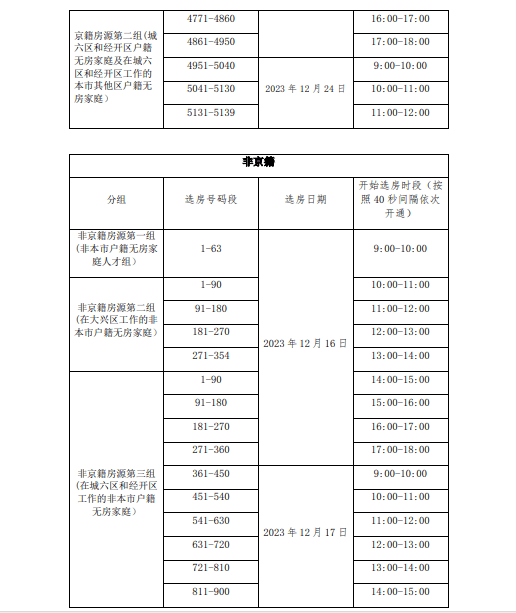 1.正式选房开始时间:京籍、非京籍组正式选房开始时间均为12月16日上午9:00,每天选房操作时间为9:00-19:00。18:00起停止开通选房权限。