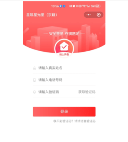 1.用手机微信“扫一扫”功能识别微信小程序二维码,进入系统登录页面,输入该项目申购时主申请人姓名→输入申购时预留电话号码→点击“获取验证码”→收到短信验证码后填入验证码→点击“登录”。(正式选房时京籍、非京籍选房开始时间相同,请根据自己的组别扫描对应的二维码进入系统。)